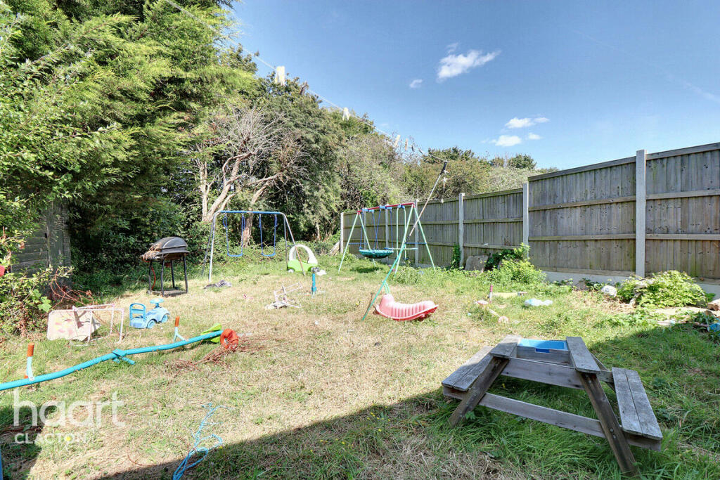This two-bedroom semi-detached bungalow in Swallowdale, Clacton-on-Sea, is presented as a potential first-time buyer or retiree property. The location offers convenience, being close to bus routes, shops, and schools. The nearby train station at Clacton-on-Sea provides access to broader transport links. Several nearby schools receive a ‘Good’ Ofsted rating, which is a positive aspect for families.