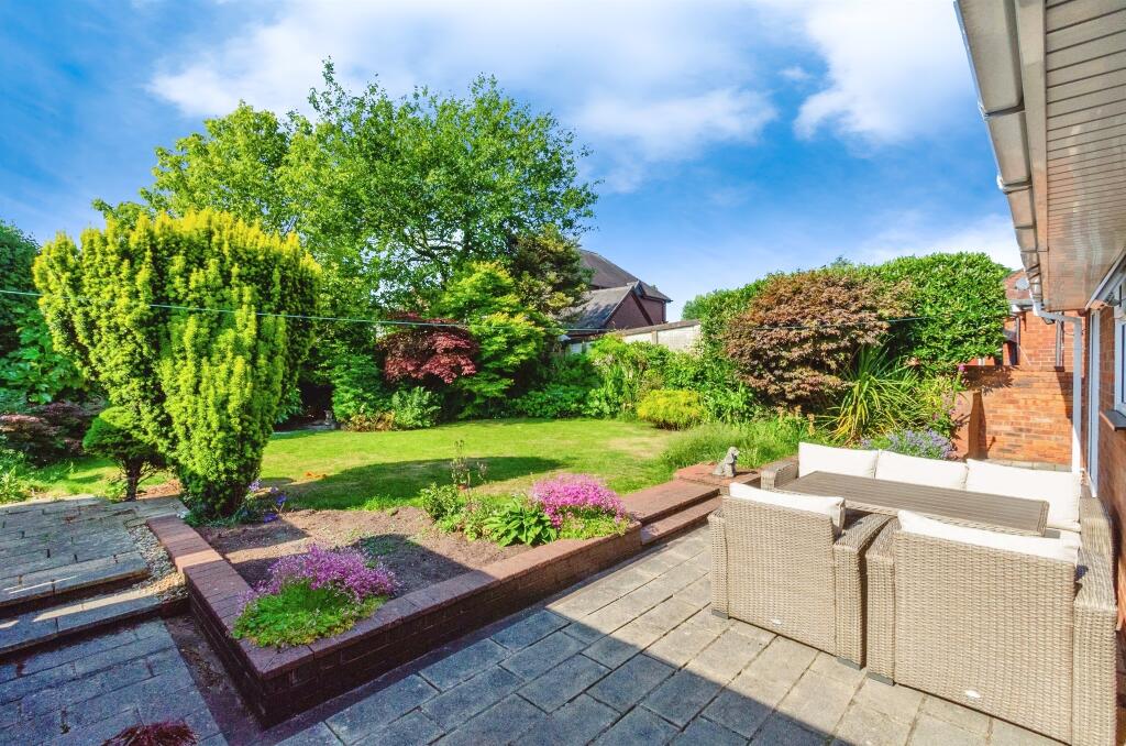 This is a detached bungalow located in Cheslyn Hay, Walsall. The property features three bedrooms and two bathrooms. The images suggest the property is in good condition, with a modern kitchen and a well-maintained garden. The location offers a balance between suburban and rural living, with proximity to schools and transport links. The asking price of £390,000 is slightly above the average for the area, but may be justified by the property type and condition. The property benefits from a garage and patio area.