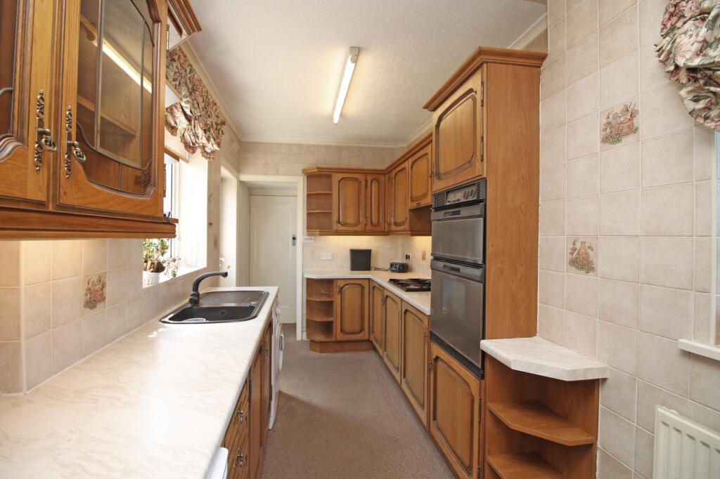 Based on the images provided, the property appears to be a traditional style house. The interior shows that the property is in need of modernisation and updating. The kitchen and bathrooms are dated, and the carpets and decor throughout are tired. The garden is present and appears to be of a reasonable size.