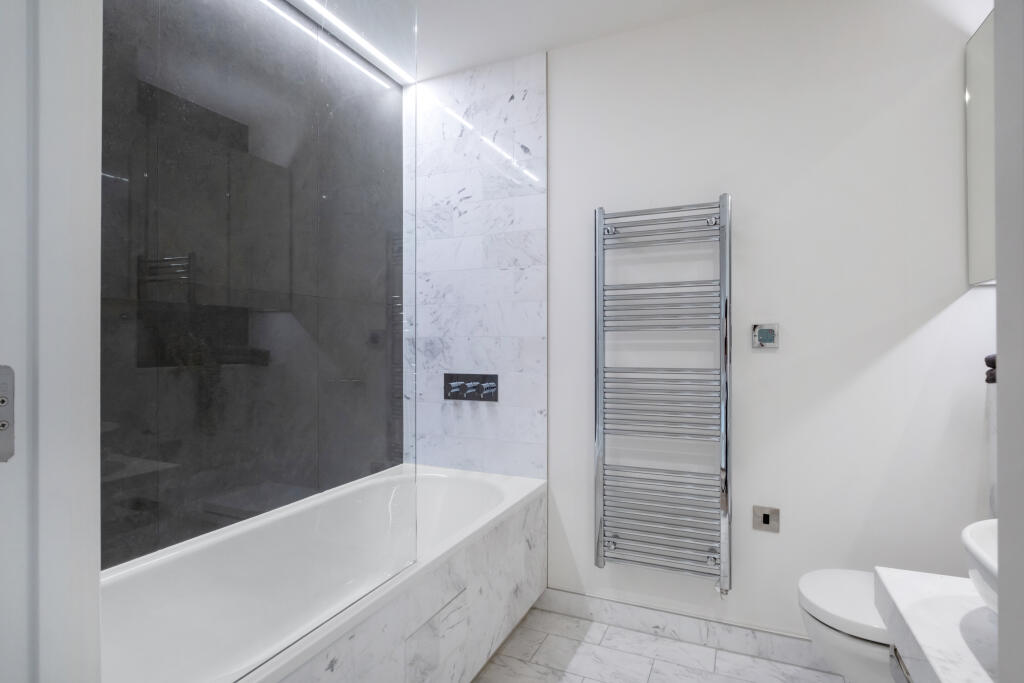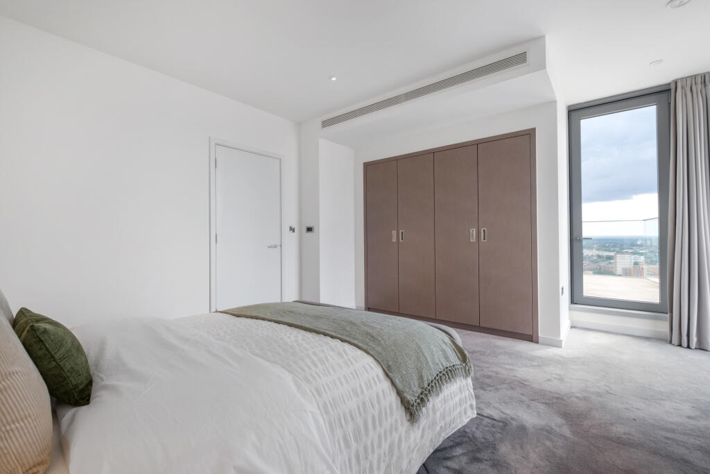 This luxurious furnished two-bedroom apartment is located on the 39th floor of the iconic Charrington Tower in New Providence Wharf.