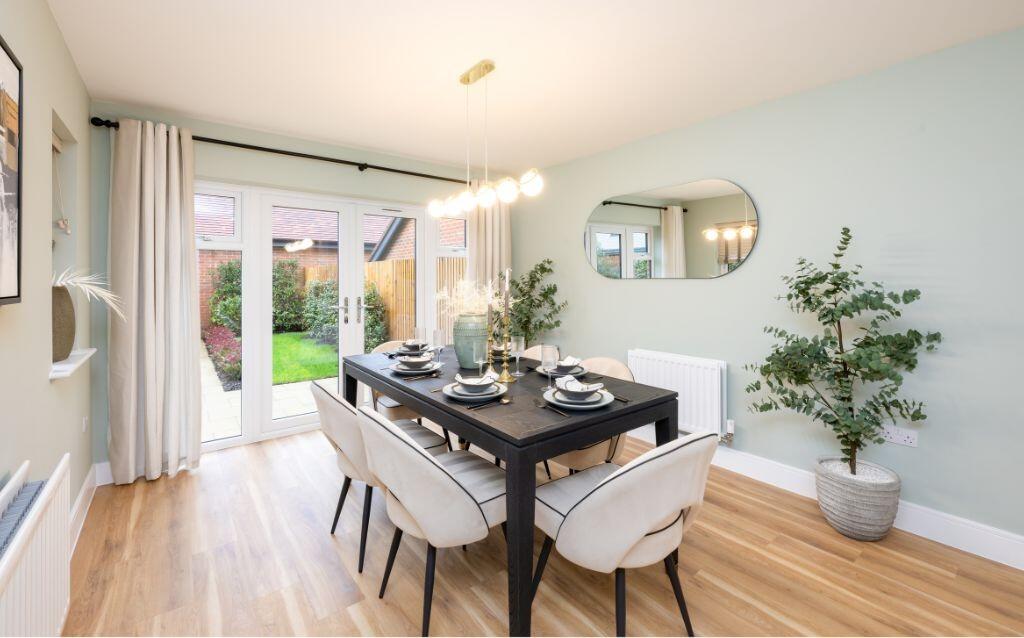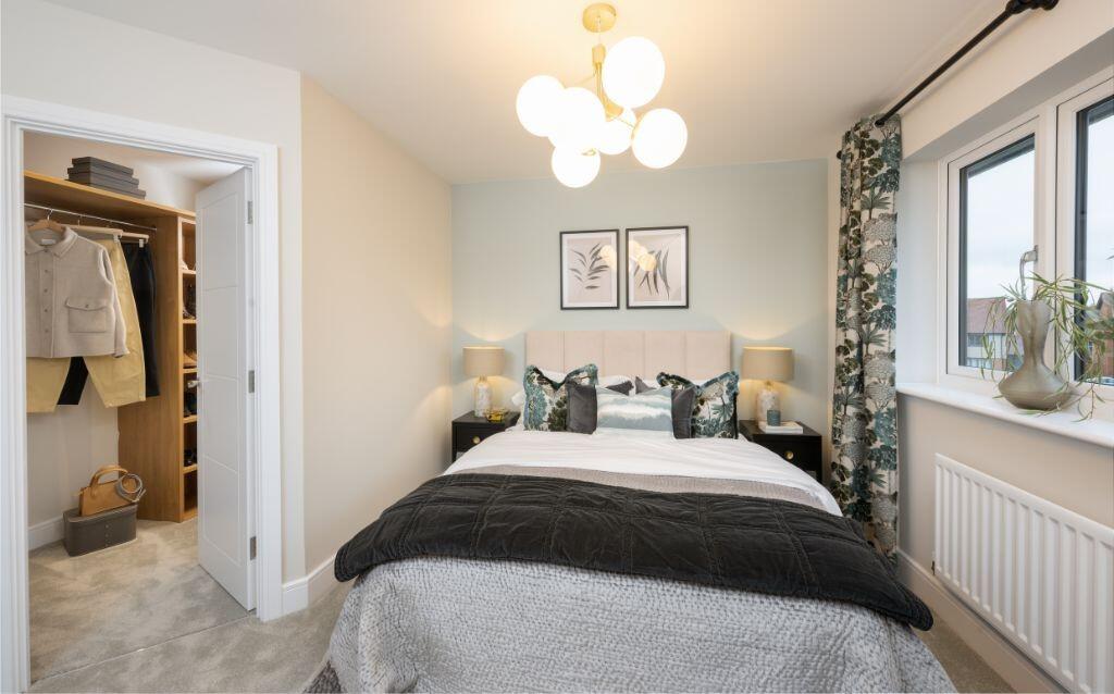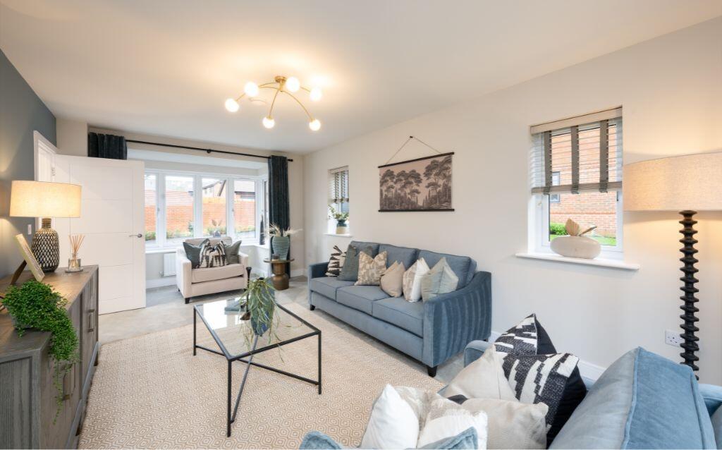 Home of the month | Show Home available, fixtures and fittings included! The Runcton is a large family home with a spacious open plan kitchen/dining/ family room with french doors to garden, and separate living room with additional french doors. Walk-in wardrobe and en-suite to bedroom 1.