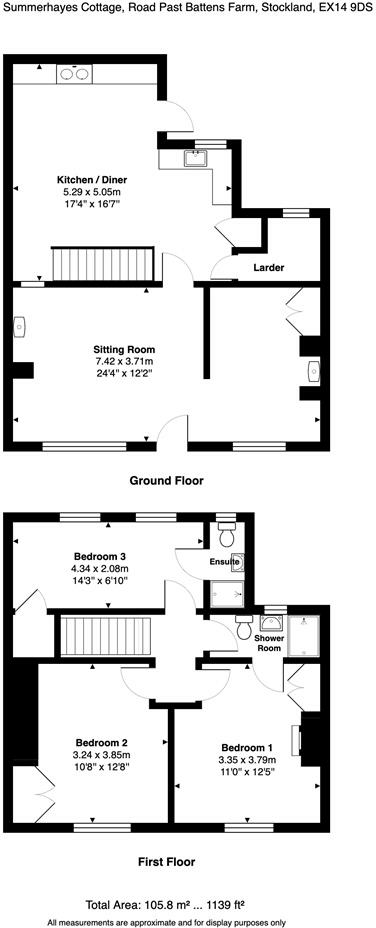 Summerhayes Cottage in Stockland is a charming three-bedroom property blending traditional character with modern comforts, featuring a master suite, a Jack and Jill bathroom, and a cosy living area with a log burner.
