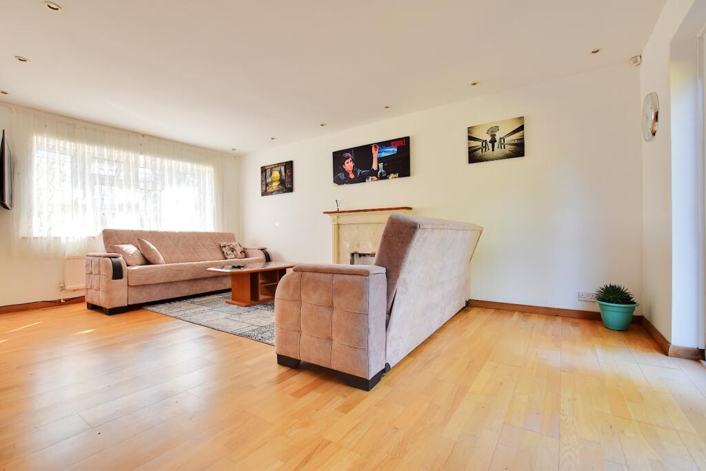 An Imposing detached house on a generous plot, offering a spacious L-shaped lounge/diner, refitted bathrooms, a double garage, and extensive parking. Sold with no onward chain