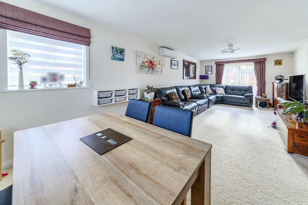 This five-bedroom, four-bathroom detached house in New Cardington, Bedford, offers spacious family living across three floors. The property boasts a modern kitchen with ample cabinet space and integrated appliances. The living area is generously sized and features a large leather corner sofa, offering a comfortable space for relaxation. The bedrooms are well-proportioned, with the master bedroom benefitting from built-in wardrobes. The property’s exterior is well-maintained, presented with brickwork and a well-kept small garden with artificial lawn. A double garage offers convenient parking. Although a full analysis is limited by a lack of provided data such as square footage in comparable sales, nearby schools receive good Ofsted ratings, suggesting a family-friendly environment. The property’s location near major roads provides convenient access to Bedford and other areas. The overall condition of the house appears to be good and well-maintained, suggesting a move-in ready property for a family looking for a sizeable residence in the Bedford area. Further information regarding plot size and more detailed specifications of comparable properties would help inform a more precise valuation.