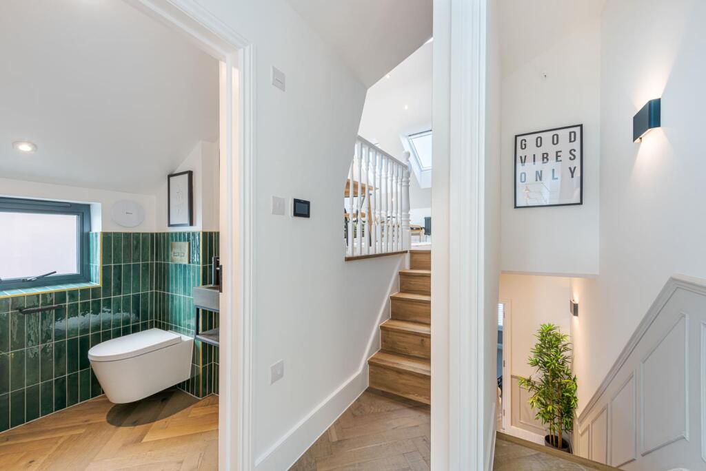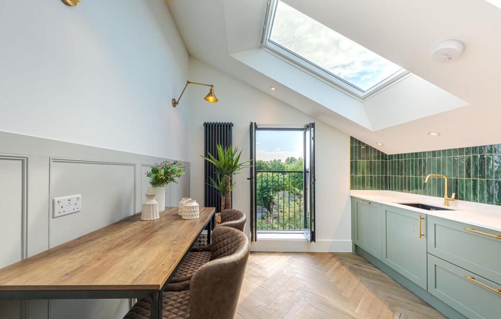 This three-bedroom, two-bathroom flat located on Cathles Road in Balham, Wandsworth, presents itself as a well-presented property. The interior photographs highlight a recent, high-standard refurbishment, showcasing a modern and stylish design. The kitchen and bathrooms particularly stand out with contemporary finishes and fixtures. The property benefits from a considerable amount of natural light, thanks to the extensive use of skylights and large windows. While the images provide a positive impression of the interior, the lack of exterior photos restricts a complete assessment of the property. The location in Balham offers convenient access to Balham train station, suggesting a straightforward commute for those working in central London. Additionally, the proximity to several well-regarded schools, including those rated ‘Good’ or ‘Outstanding’ by Ofsted, is a significant plus for families. The listing mentions that the property comes with no garden, and this is further supported by image evidence of a small balcony space. Overall, this refurbished flat represents a potentially attractive option, especially for those prioritising a modern interior and convenient location in Balham. However, prospective buyers should consider the lack of garden space and independently verify the property’s external condition and the exact square footage of comparable properties before making an offer. The price, while within the range of similar properties, requires further investigation through comparative market analysis to determine its true value proposition.