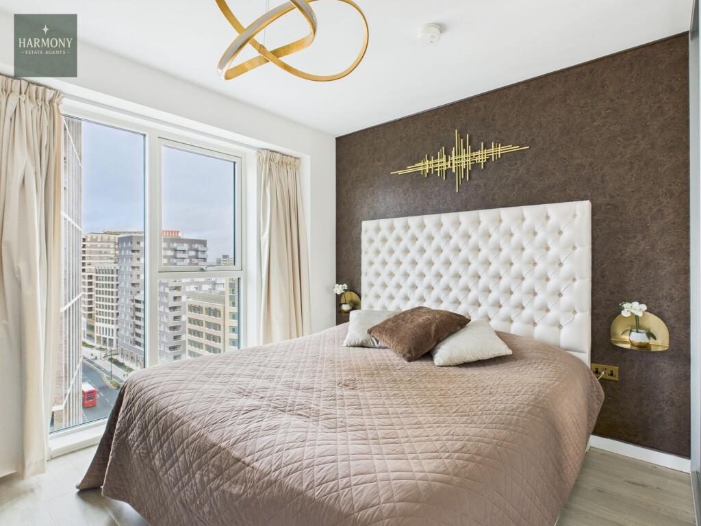 Modern two double bed Canning Town apartment with ensuite, balcony, river views, main bathroom, private and secure EV parking, and excellent transport links. Ideal for professionals or couples.