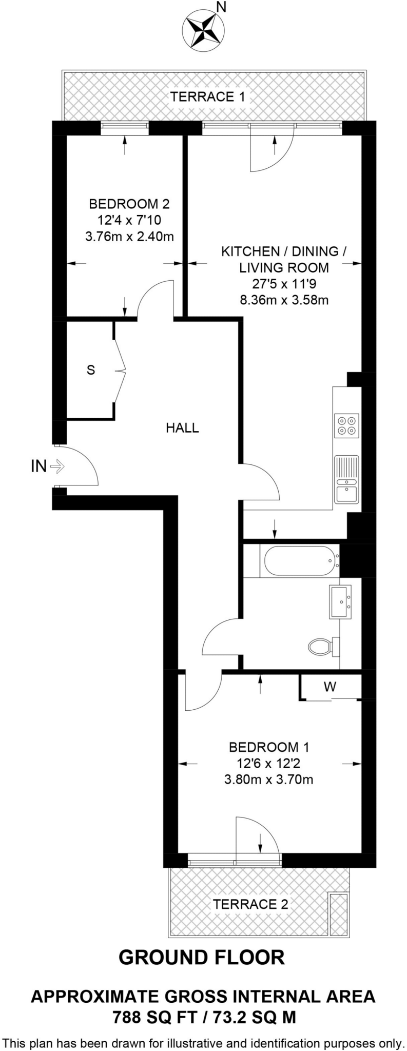Modern 2 bedroom flat offering spacious interiors throughout the property, plenty of storage space, 2 private patios, sleek bathroom and contemporary open plan reception room with fully fitted kitchen.