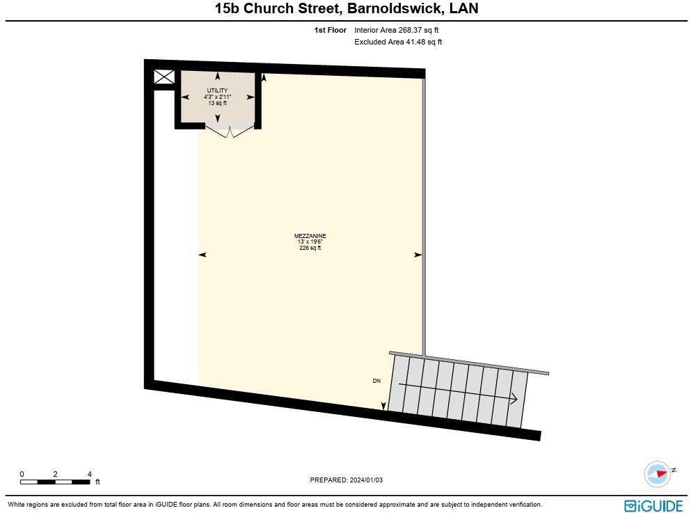 Modern loft apartment with mezzanine living room, open plan kitchen / dining, bathroom and bedroom. Neutral decor & floorings. Entrance intercom, electric central heating & conventional style radiators.