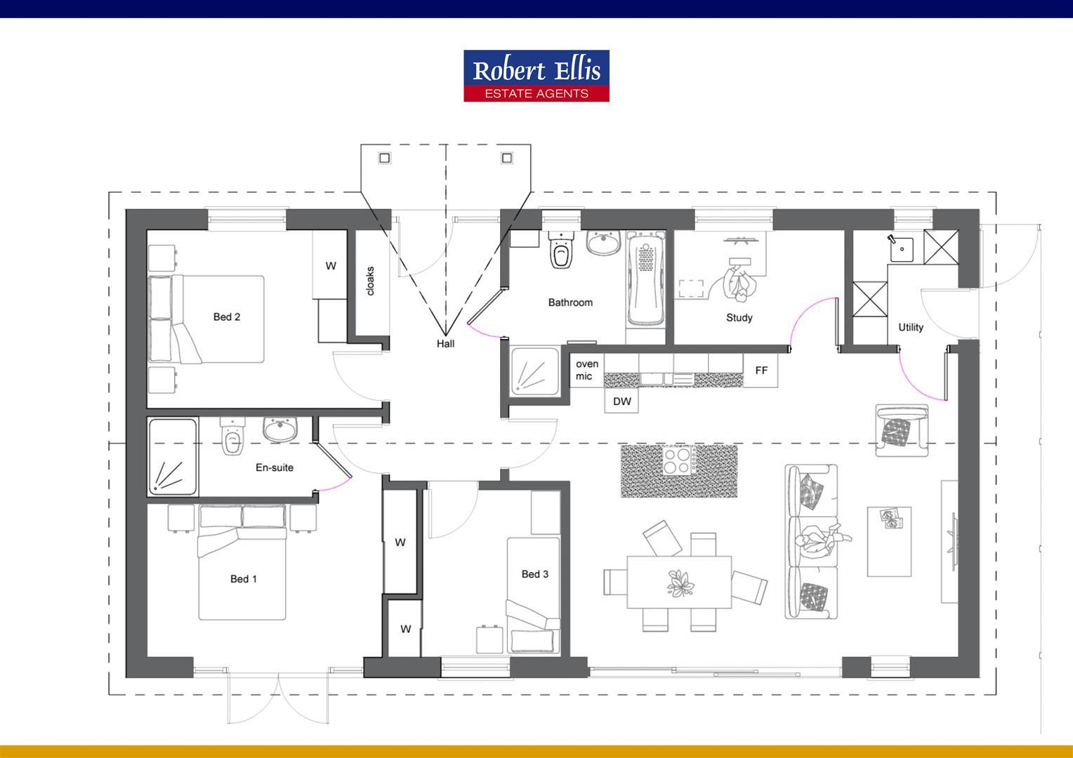 A THREE BEDROOM, TWO BATHROOM DETACHED BUNGLOW. In brief this modern newly built bungalow comprises a spacious living/dining kitchen, utility with side access door. Study/bed 4. Inner entrance hallway, main bathroom with a four-piece suite comprising double ended bath, vanity wash hand...
