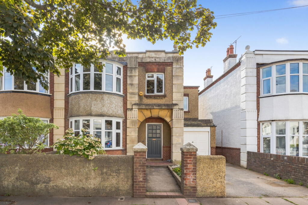 This is a 4-bedroom semi-detached house in Worthing, West Sussex. The property benefits from a modern kitchen and bathrooms, a good-sized garden, and a garage. The property is located close to schools and transportation links. The exterior of the property could benefit from some updating. The price seems reasonable, but perhaps a little high.