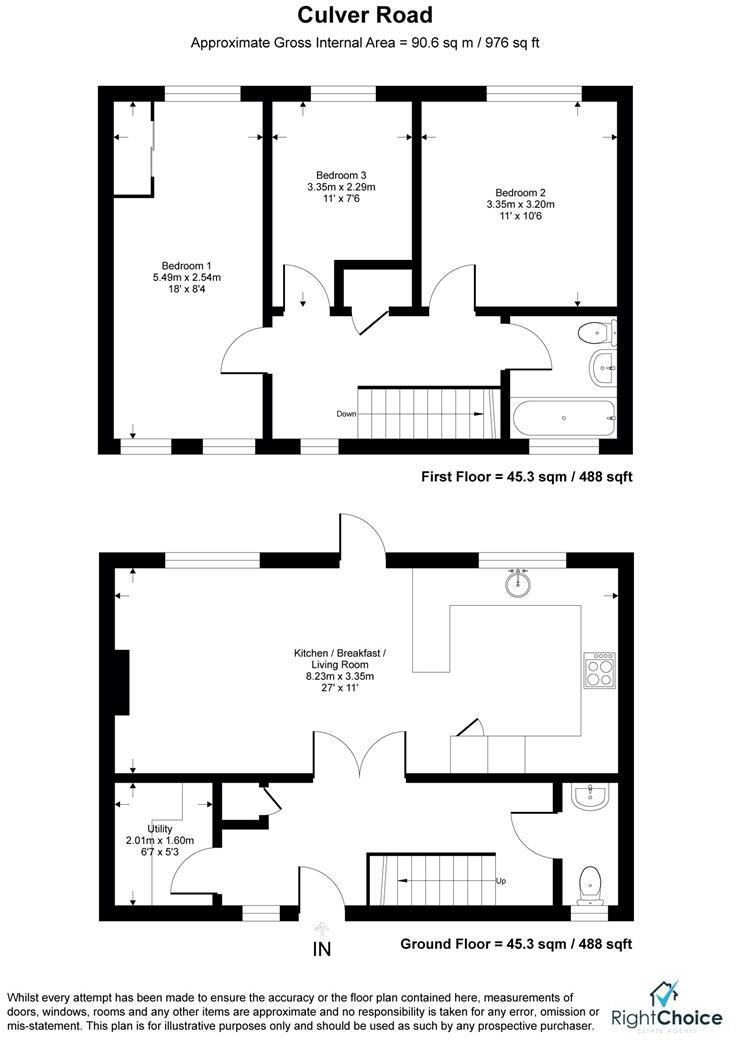 Right Choice Estate Agents are delighted to offer to the market this well presented end of terrace family home. The ground floor offers an entrance hallway, open plan living/kitchen area, utility and w/c. The first floor benefits from three bedrooms two of which are doubles and a modern fitted ba...
