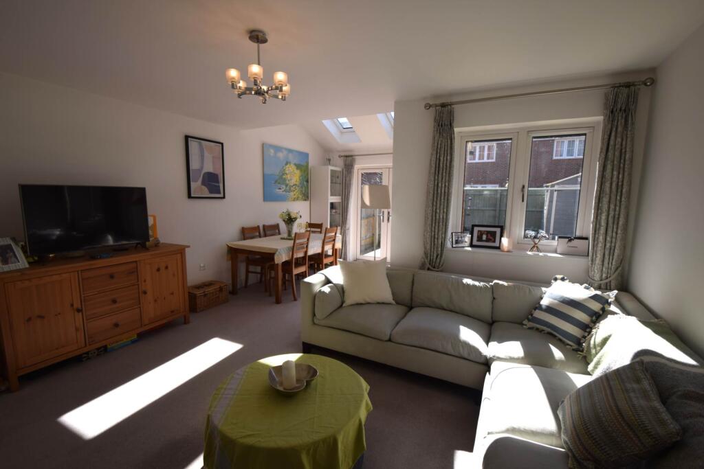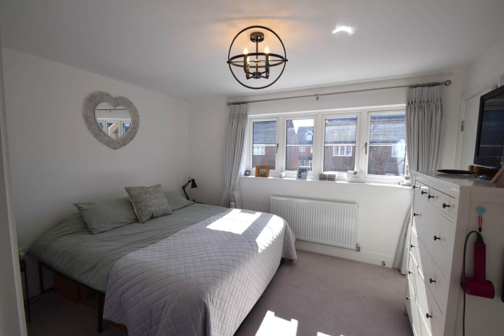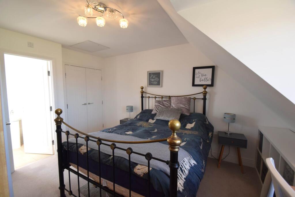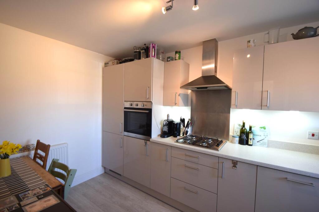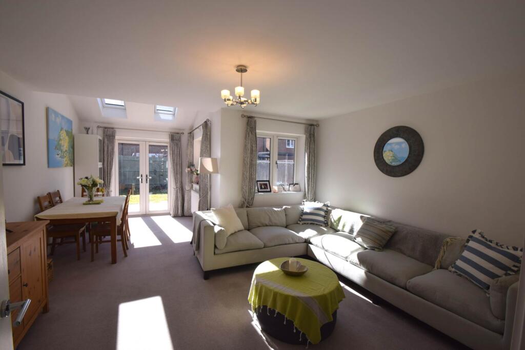 In a quiet location with open green land to the front, a spacious family home arranged over 3 floors with accommodation comprising cloakroom, kitchen, living/dining room, 3 double bedrooms, 2 en suite shower rooms & family bathroom. The property benefits from off street parking & enclosed garden