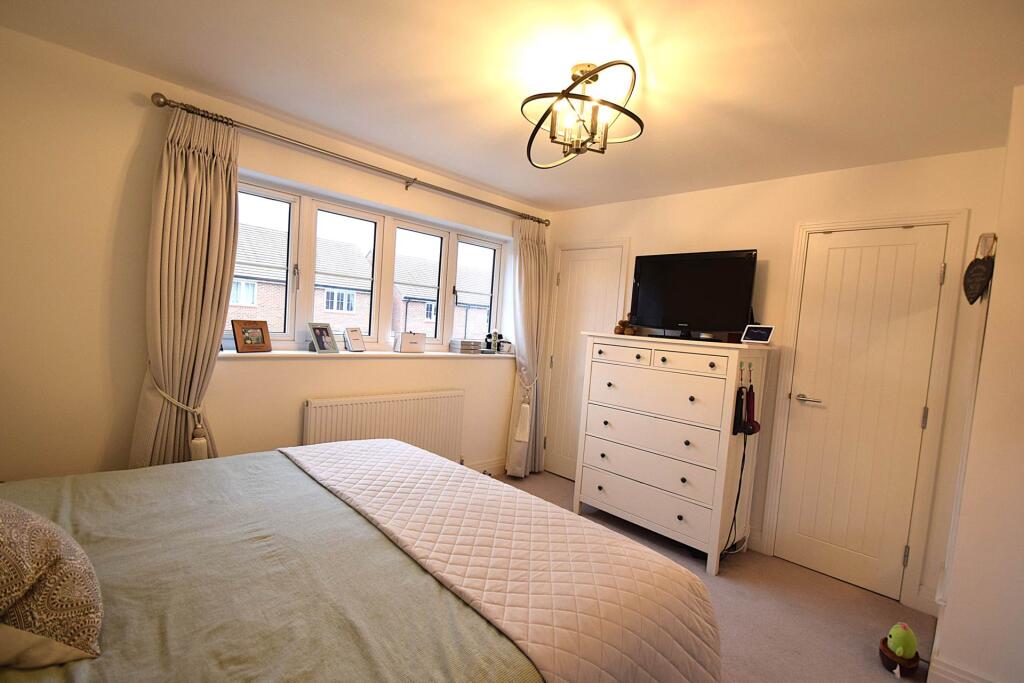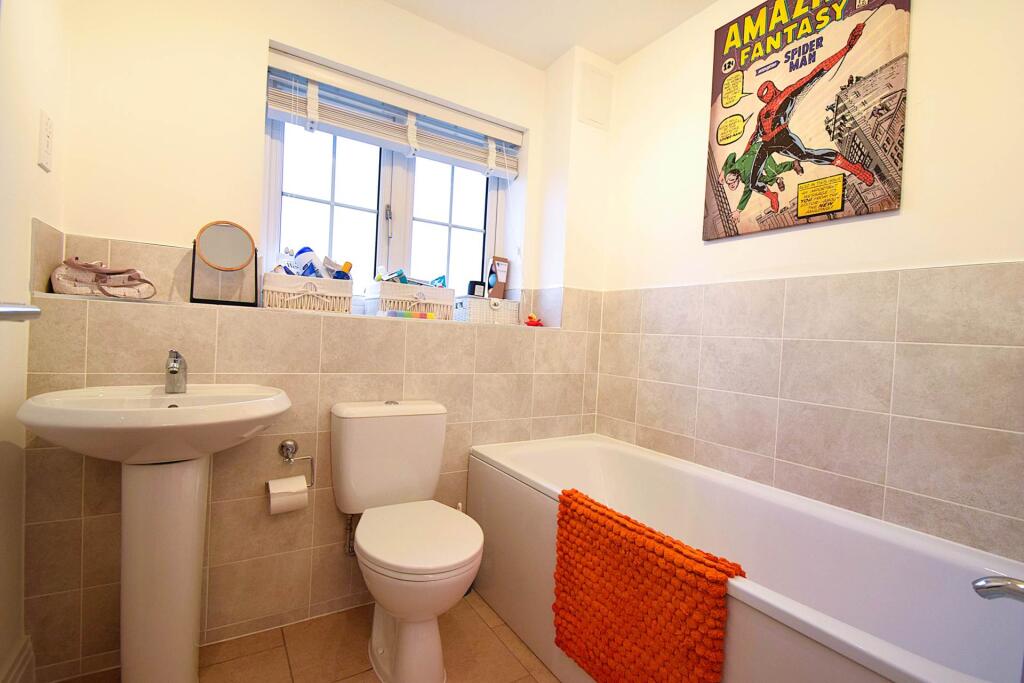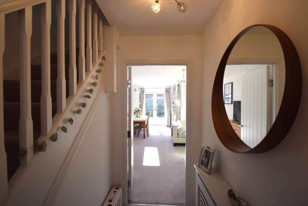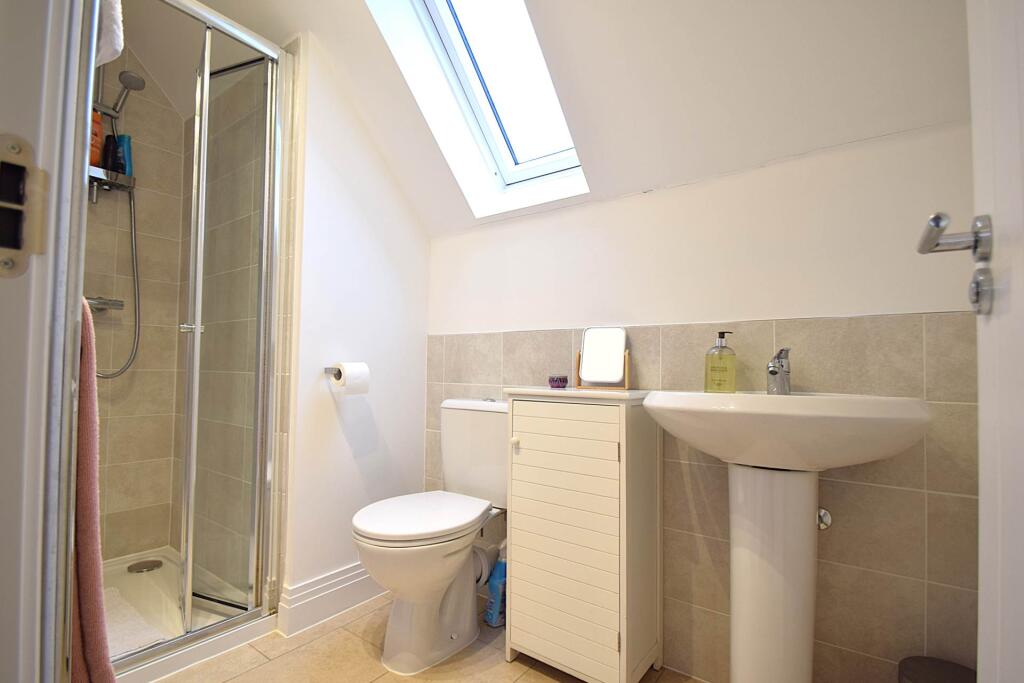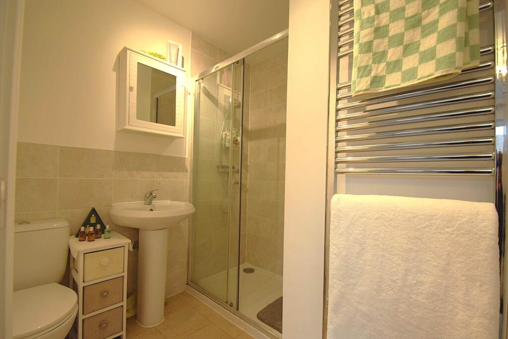 In a quiet location with open green land to the front, a spacious family home arranged over 3 floors with accommodation comprising cloakroom, kitchen, living/dining room, 3 double bedrooms, 2 en suite shower rooms & family bathroom. The property benefits from off street parking & enclosed garden