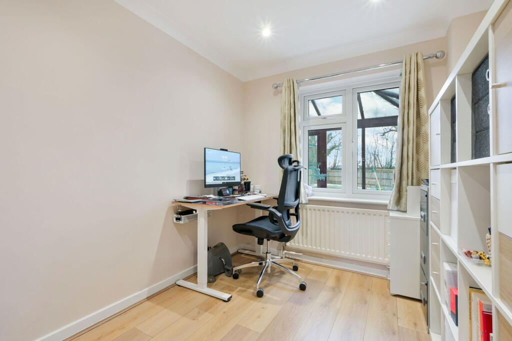 This is a detached property located on Smallfield Road in Horley. It features four bedrooms and two bathrooms, making it suitable for families. The property benefits from a garden, off-street parking, and a double garage. While generally well-maintained, some areas like the kitchen and bathrooms could use updating. The location is convenient, with nearby schools and transportation links. The property includes a conservatory. The price is on the higher side for the area.