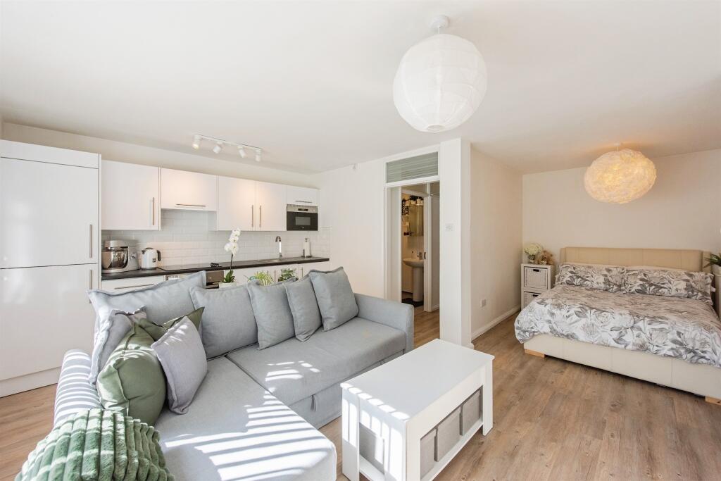 This contemporary, well-maintained studio apartment offers a bright, open-plan living area with a stylish kitchen and integrated appliances. It benefits from communal gardens, parking, and easy access to local amenities, making it an ideal low-maintenance home in a desirable village.