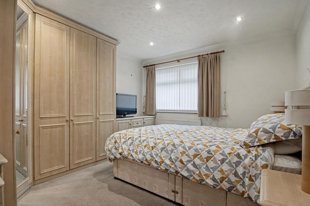 This is a three-bedroom semi-detached bungalow in Exhall, Warwickshire. The property offers a garden, a modern bathroom, and is located near schools and transportation. While generally well-maintained, some areas could use updating. The asking price of £265,000 appears reasonable in comparison to the local market.