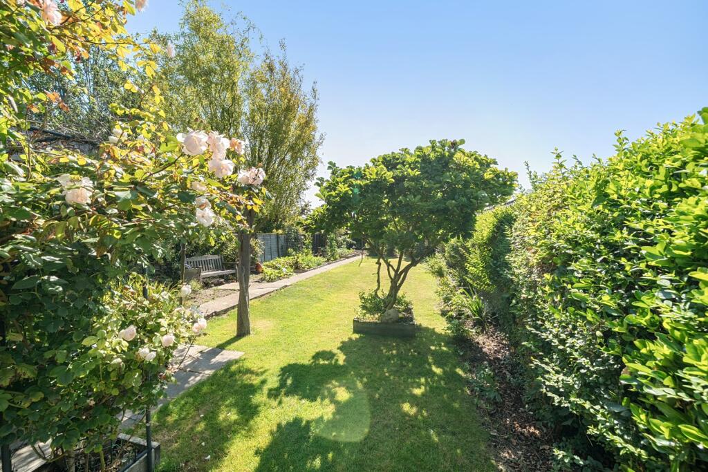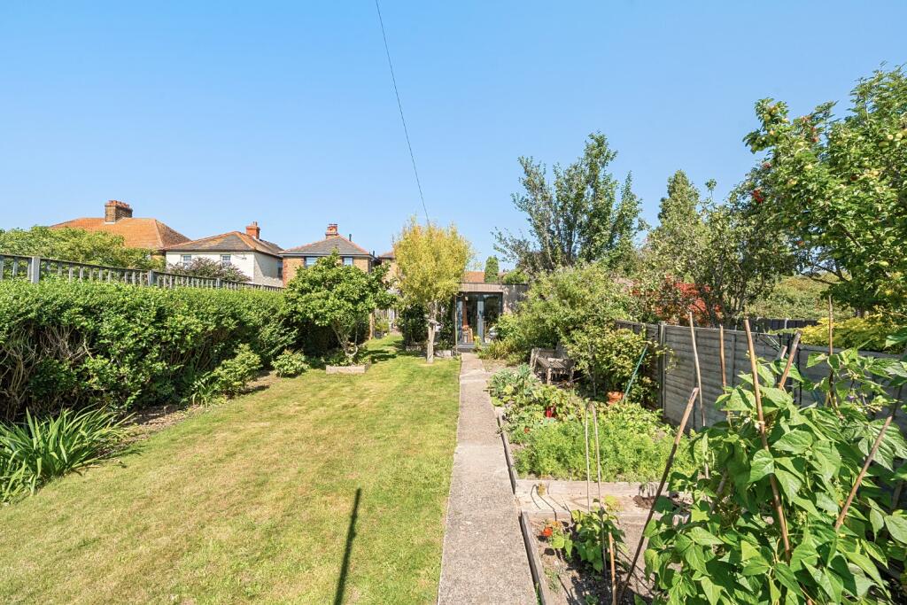 This detached property is located in the historic town of Sandwich, Kent. It benefits from good transport links and proximity to well-rated schools. The house appears to be in good condition, with a modern kitchen and well-maintained rooms. It also boasts a well-maintained garden with a greenhouse and shed.