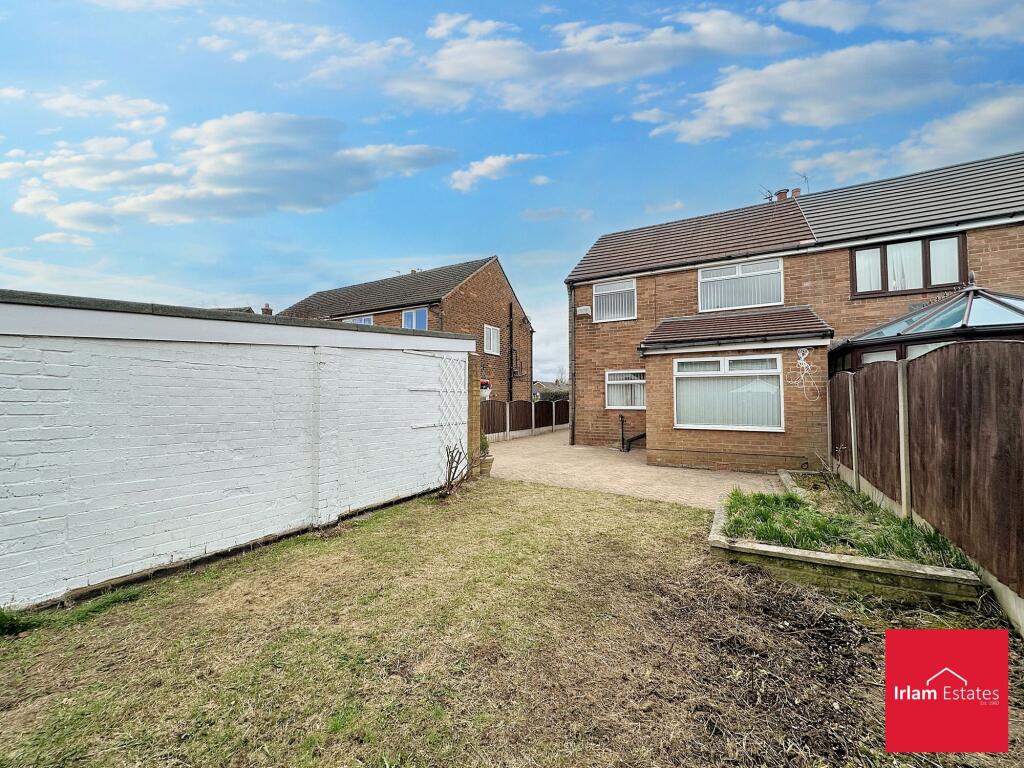 This property is a 3-bedroom semi-detached house located in Irlam, Salford. The location benefits from being within a reasonable distance of several primary schools, including Fiddlers Lane Community Primary School (rated Good by Ofsted) and St Joseph The Worker RC Primary School (also rated Good). Several train stations are also within a few kilometers, providing convenient access to public transport. The property itself appears to be in relatively good condition, although some of the interior decor is dated. The kitchen and bathroom appear functional but could benefit from some modernization. There is a small garden and a garage. The property is listed at £249,995. Compared to other properties in the area, this price point seems reasonable given the size and amenities. However, the lack of plot size information makes a definitive assessment challenging.