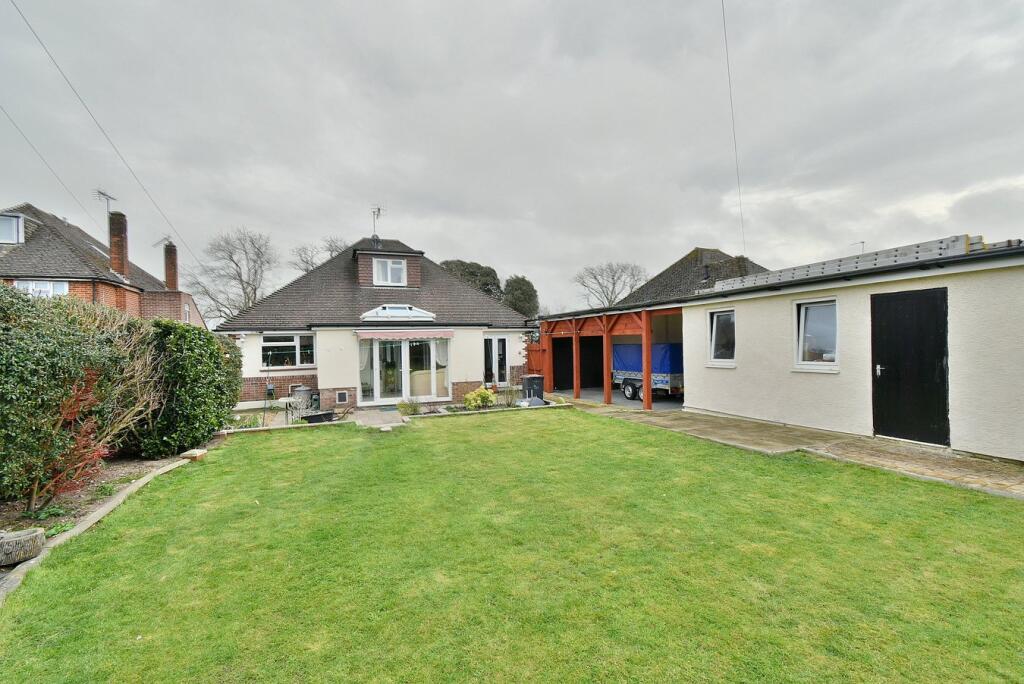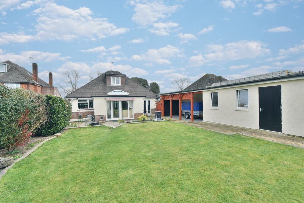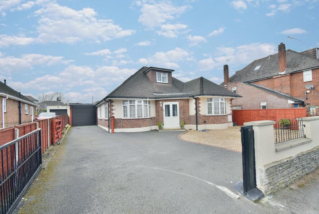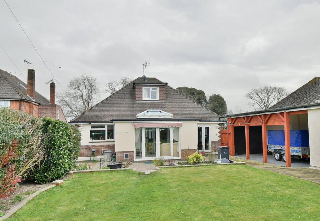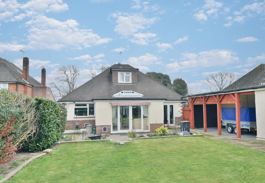 This CONVENIENTLY LOCATED AND DECEPTIVELY SPACIOUS four bedroom, one bathroom, one shower room, two reception room detached chalet bungalow has a PRIVATE 80ft west facing rear garden, car port, single garage and generous off-road parking. SOUGHT AFTER LOCATION within West Parley, approxi...