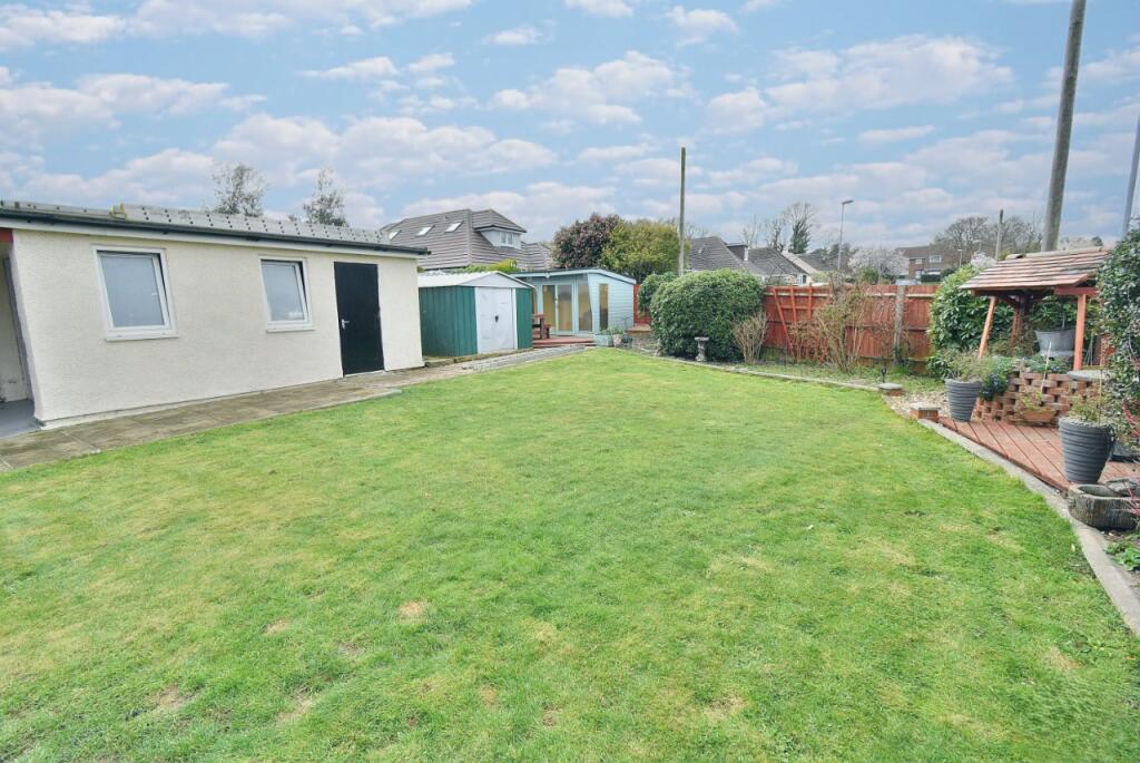 This property is a detached bungalow located in West Parley, Dorset. It has four bedrooms and two bathrooms, and is situated on a plot of 1,525 sqft. The property benefits from a large garden, a garage and ample off street parking. The interior is presented in good order and benefits from a modern kitchen. The location is convenient for local amenities and transport links. The asking price is £525,000, which is slightly below the average price for the area. However, the average sqft in the area is 1358 sqft and this property is 1499 sqft. This is a larger than average property for the area. Considering the condition, location, and size of the plot, the price seems reasonable.