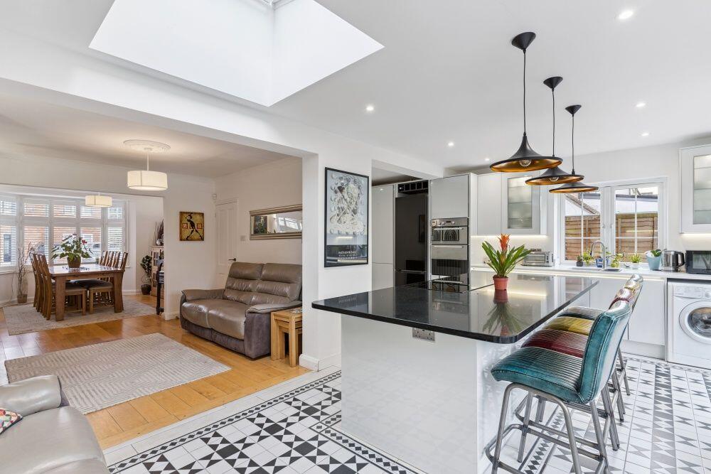 This is a semi-detached property on Fairview Road in Stevenage’s Old Town. The house offers three bedrooms and two bathrooms. The interior has been modernised, especially the kitchen and living spaces. It also has a good-sized garden with an outbuilding. The property is located near good schools and transport links. The price seems a little high compared to the area’s average, but the condition and features justify it.