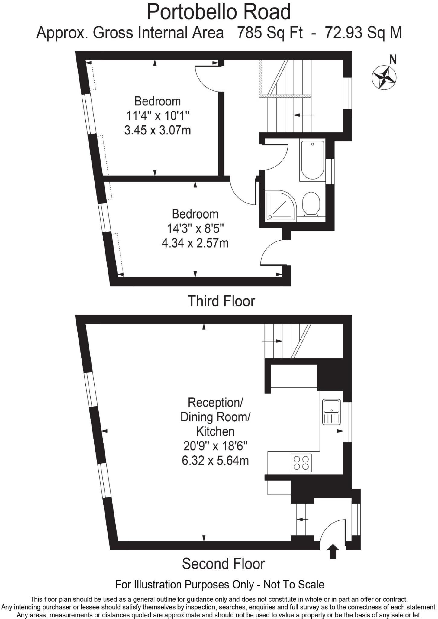 Offered on a short-let basis, this stunning, fully refurbished split-level two-bedroom apartment, set on the second floor of a charming period building on the world-famous Portobello Road.