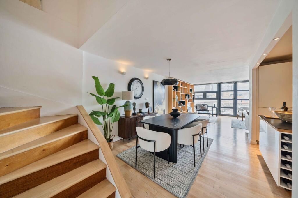 A particularly spacious two double bedroom split level apartment of almost 1,200 sqft with three balconies, and enjoying uninterrupted skyline views of the Shard, Tower Bridge and the City.