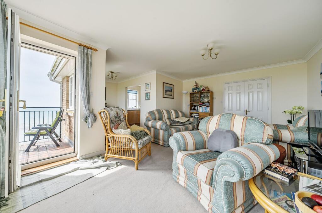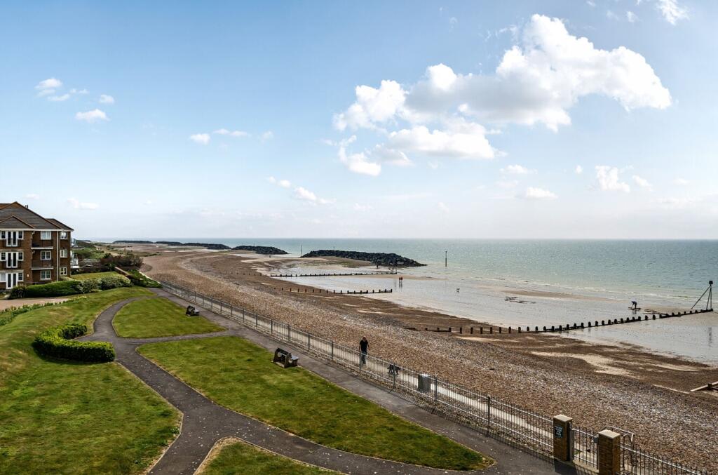 A second floor BEACHFRONT apartment with FAR REACHING VIEWS OF THE SEA and SOUTH DOWNS on the Private Saxon Reach Estate. LIFT, TWO BALCONIES & garage, en-suite. NO ONWARD CHAIN. EPC-C