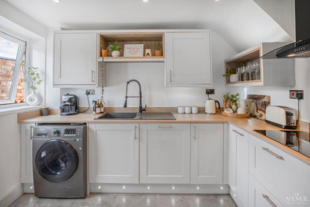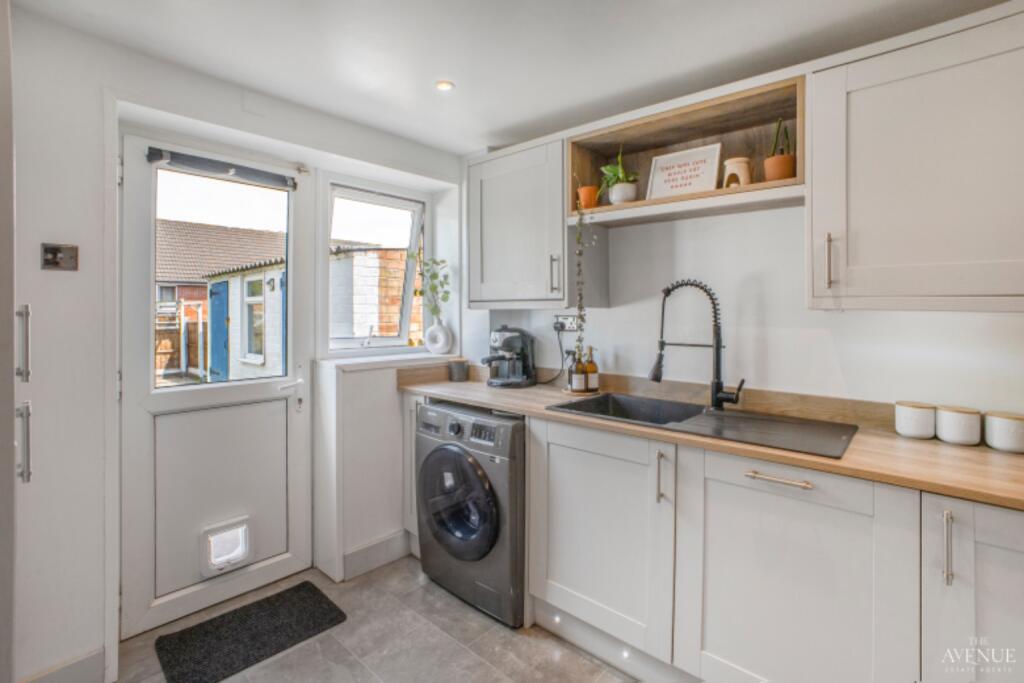 This end-of-terrace property is located on Foxwalks Avenue, Bromsgrove. It features three bedrooms, one bathroom and benefits from a garden. The property is conveniently located near schools and transportation links. The house appears to be in good condition, with a modern kitchen and bathroom.
