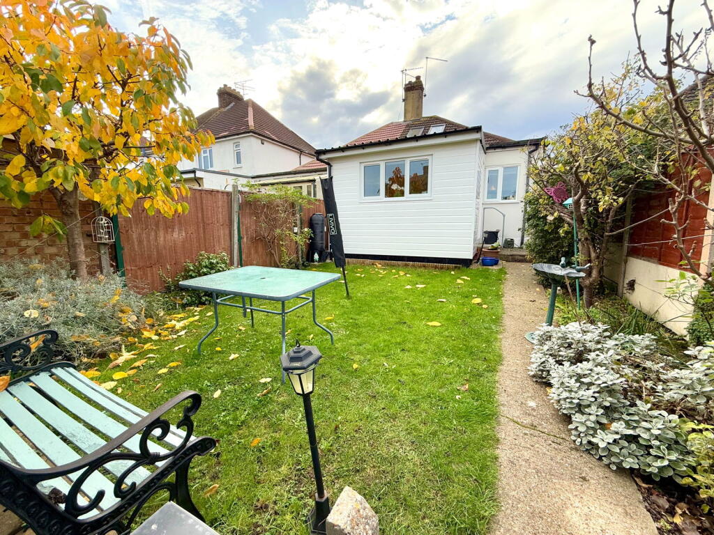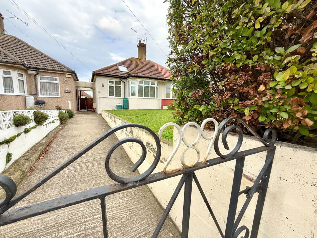This is a semi-detached bungalow located on Old Road East in Gravesend. The property has 3 bedrooms and 1 bathroom. It is located in the Riverside locality. The property is in good condition, with modern interiors and a well-maintained garden that includes a shed converted into a bar. Several schools are located within a kilometre of the property. Gravesend railway station is 2.8km away. The list price of £325,000 is reasonable for the area.