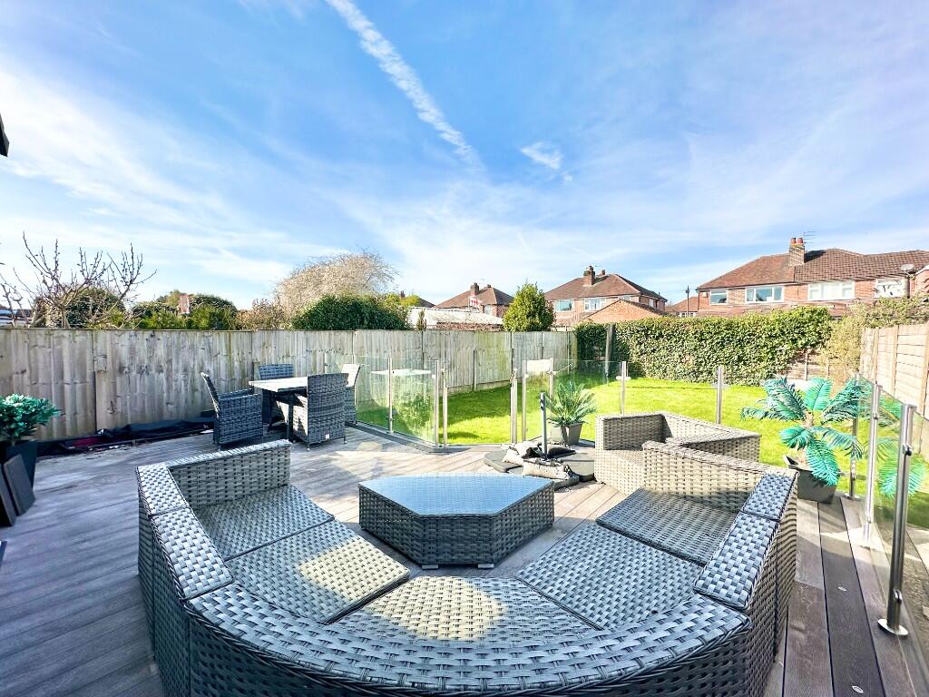 This property is a 3 bedroom, 2 bathroom semi-detached house located on Arnesby Avenue, Sale, Cheshire. The property benefits from a modern extension and has been significantly improved. The extension includes a stunning open plan kitchen/diner/living area with bi-fold doors leading to a decked patio area and garden. The property also benefits from a good sized garden.