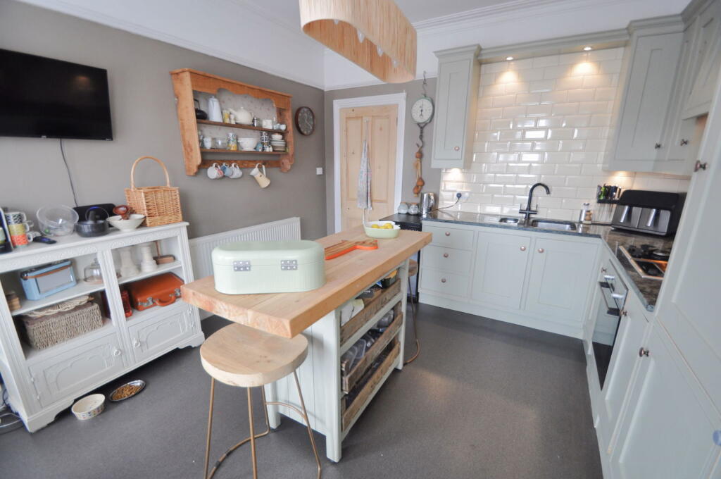 Based on the provided images, the property appears to be in good condition. The interior is well-maintained and presented, with a modern style throughout. There is evidence of recent renovations or modernisation in the kitchen and bathrooms. The property has retained some of its traditional character, particularly evident in the fireplaces and internal doors.