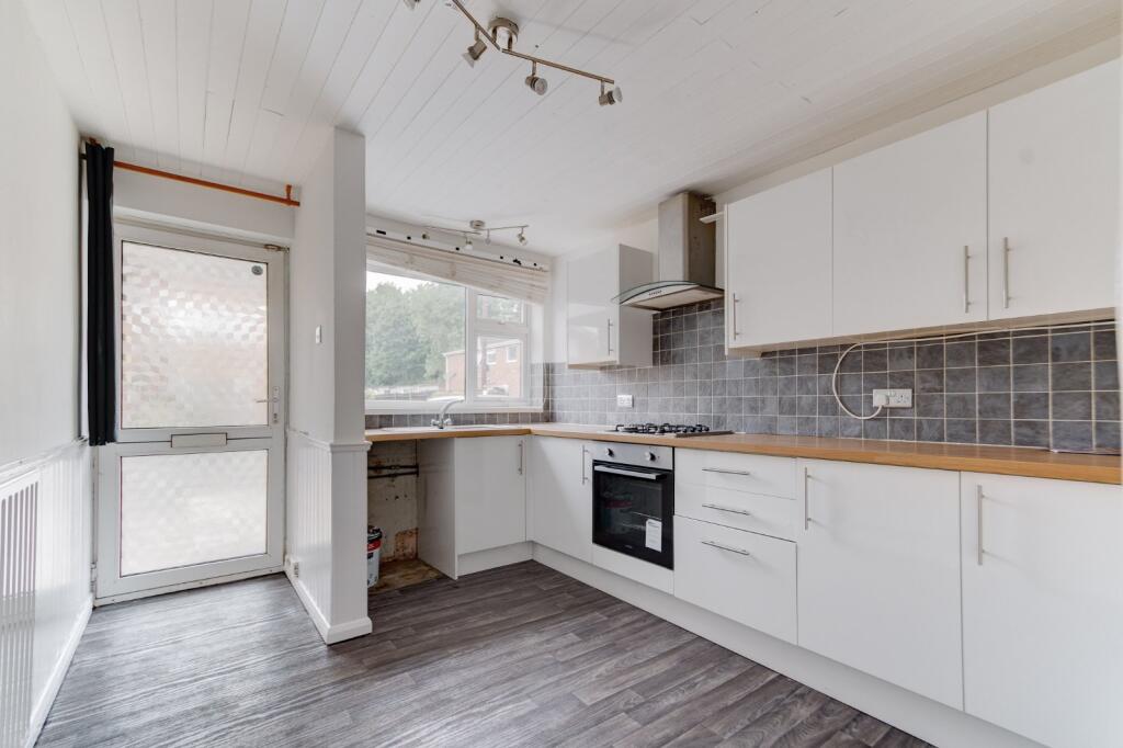 This three bedroom, terraced house presents a spacious lounge, large kitchen, generous garage, two double and one single bedrooms, family bathroom, a grass laid rear garden and off street parking.