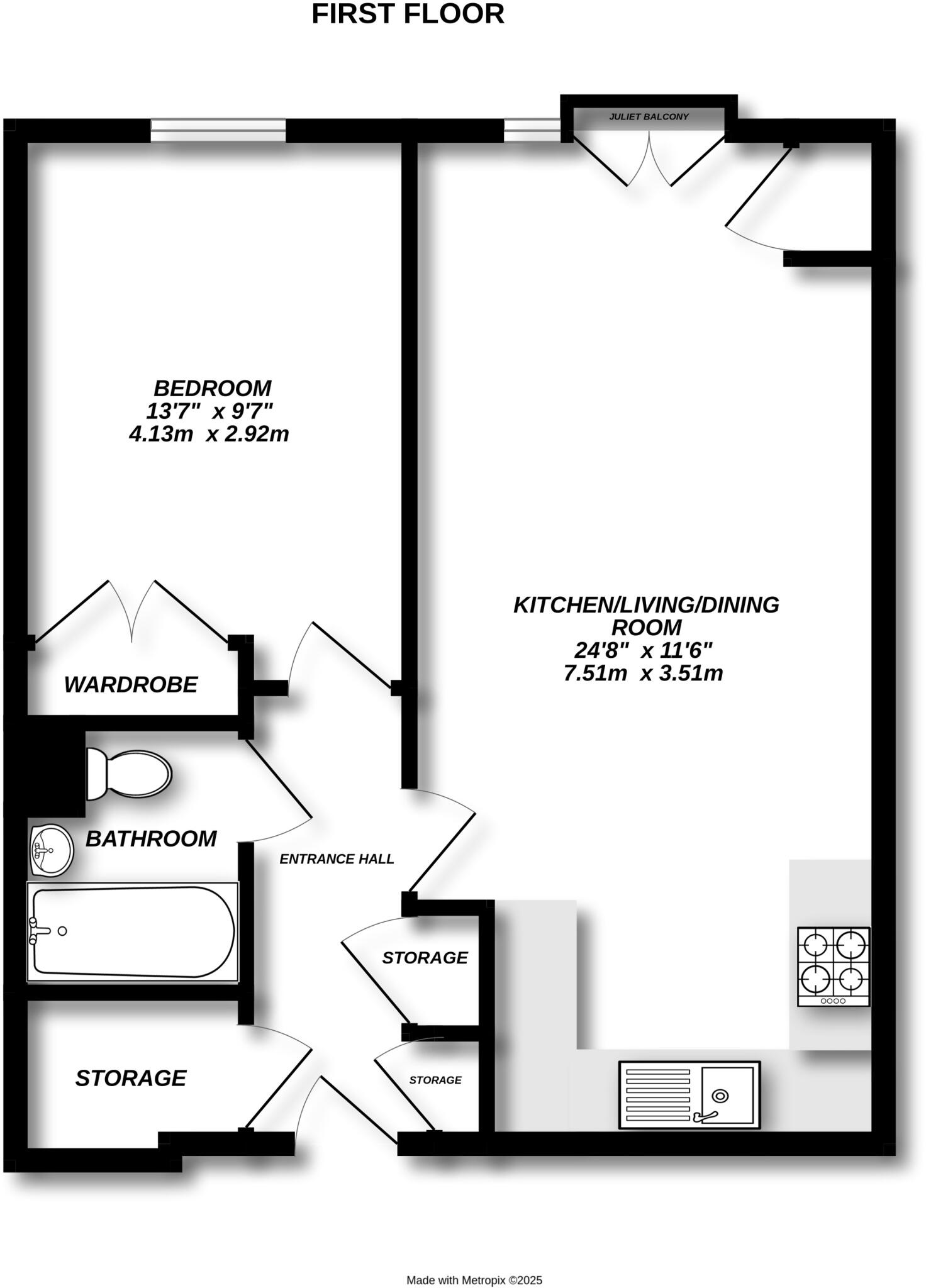 This modern and contemporary one bedroom apartment is located on the first floor of Lime Tree House. The property offers a well proportioned open plan kitchen, dining and living area, with a timeless white fitted kitchen that includes a four burner gas hob, built-in oven, integrated fridge and fr...