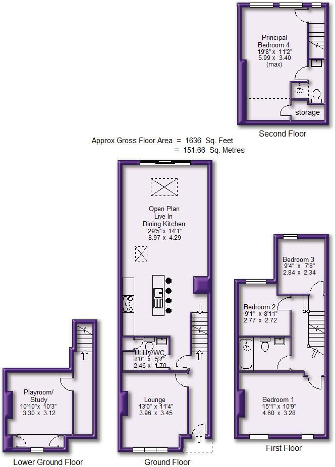 A STUNNING FOUR STOREY VICTORIAN PROPERTY, IDEALLY LOCATED AMONG THE POPULAR TREE ROADS, WALKING DISTANCE TO BOTH HALE VILLAGE AND ALTRINCHAM TOWN CENTRE AND EXCELLENT LOCAL SCHOOLS. 1636sqft. Hall. Lounge. 400sqft Live In Dining Kitchen. Study/Playroom. Utility/WC. Four Bedrooms. Two B...