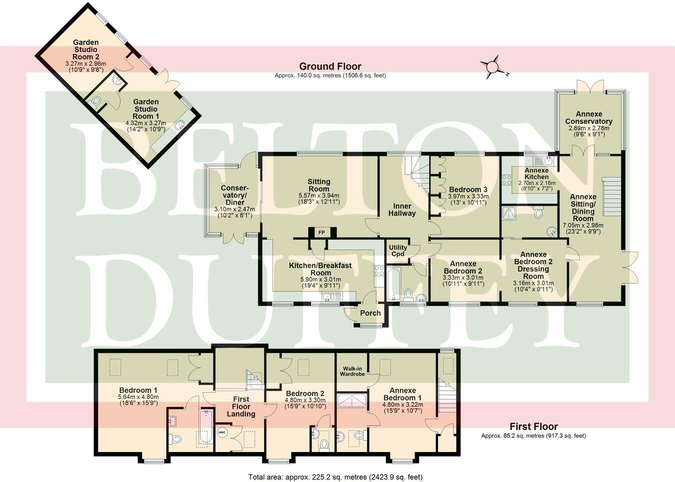 A substantial detached family house with flexible 5 bedroom accommodation, including self-contained annexe, with driveway parking, good sized gardens and a garden studio building,