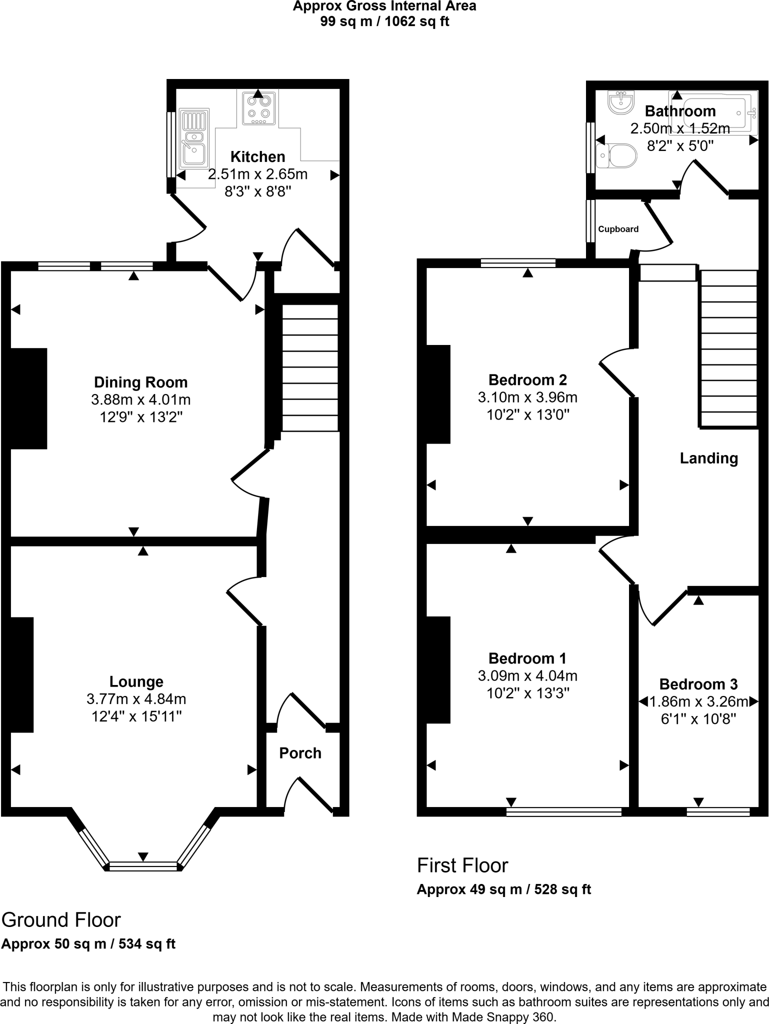 Based on the provided images, the property appears to be in generally good condition. While some rooms show signs of needing decoration, the structure seems sound and the property has recently had some updates such as a modern kitchen. The bathroom, however, appears dated and could benefit from modernisation.
