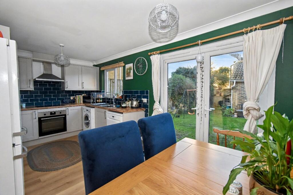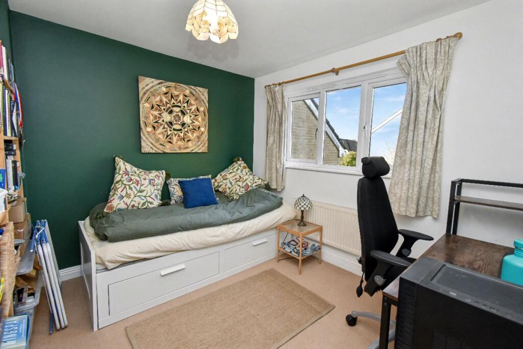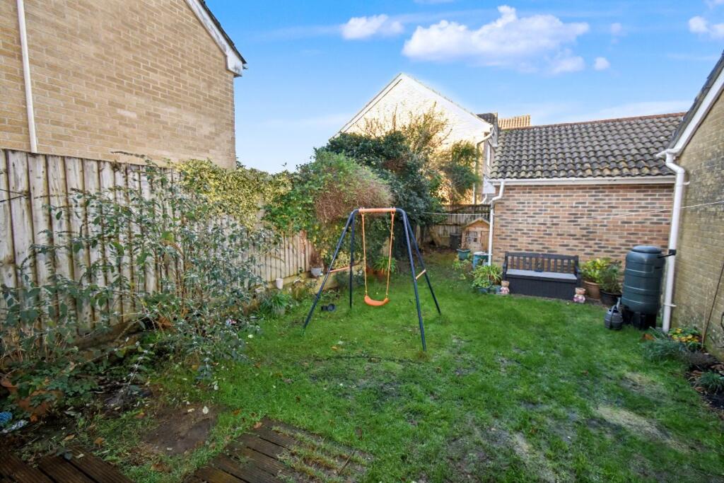 A detached home located on a modern development, offering easy access to the town centre, local schools, and the train station. The property benefits from parking, a garage, and an enclosed garden, and is positioned within a quiet cul-de-sac of similar homes on the eastern side of town.