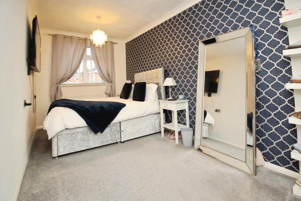 This is a detached property in East Goscote, Leicestershire, listed for £390,000. The property has 4 bedrooms and 1 bathroom, with a square footage of 417.21. The property appears to be in good condition, with modern interior design and a well-maintained garden. The property is located close to local schools and transportation links. The price is reasonable for the area, considering the condition and location of the property.