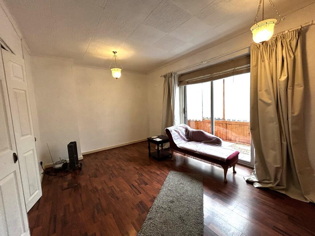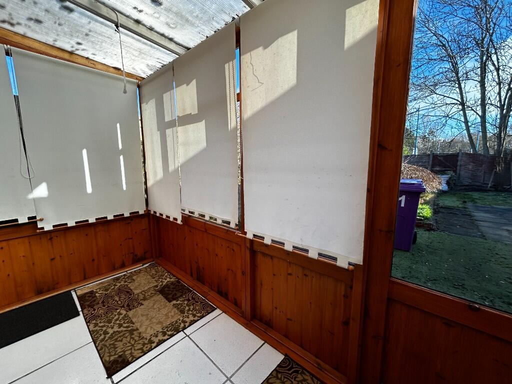 The interior of the property requires some modernisation. The decor is dated, and while the structure appears sound, improvements are needed. The flooring, wallpaper, and kitchen appear to need updating. The small rear garden shows the typical size for houses in this area. It requires some attention and tidying.