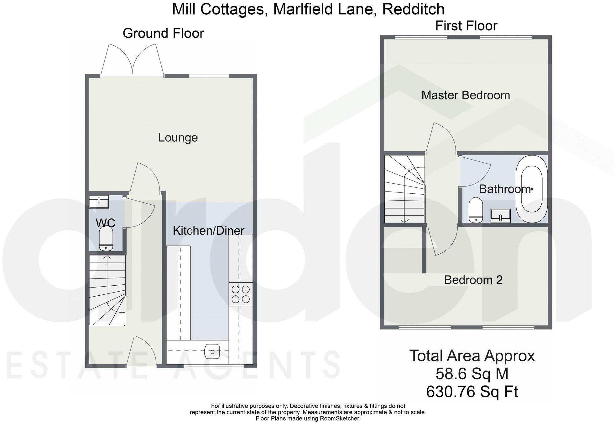 This is a modern end-of-terrace property located on Marlfield Lane, Redditch. The property has 2 bedrooms and 1 bathroom, with a total square footage of 630.76. The property includes a private garden. The interior is modern and well-maintained. Nearby, there are several schools and transportation options. The listing price is £275,000.