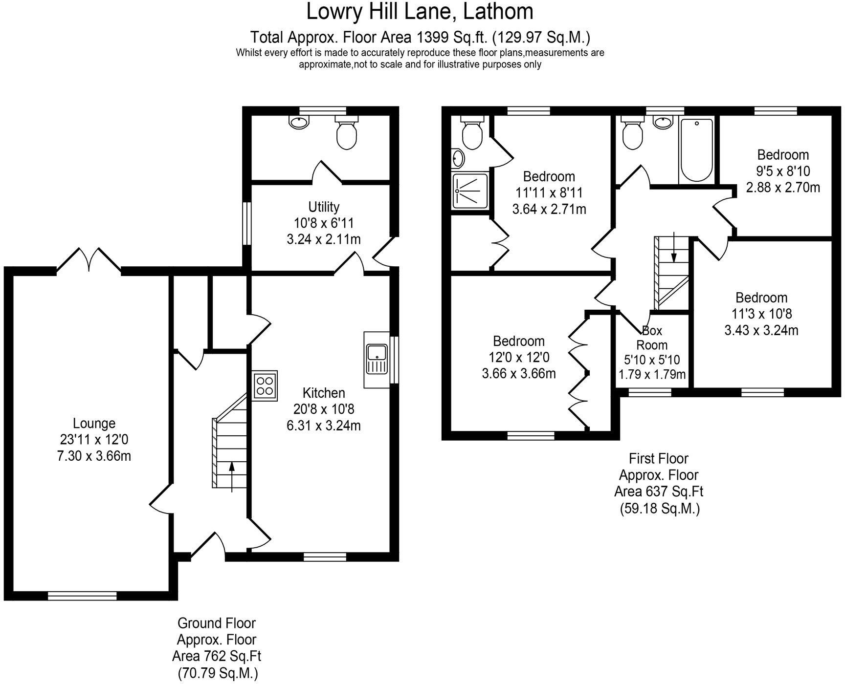 This is a detached property located on Lowry Hill Lane, Lathom. It features four bedrooms and two bathrooms, with a floor area of 1,398.99 sqft. The property includes a garden. While generally in good condition, some areas, particularly the kitchen and utility room, would benefit from modernisation. The location is convenient, with proximity to schools and transportation links. The asking price of £450,000 appears reasonable when considering the size and location, but potential buyers should factor in the cost of planned upgrades.