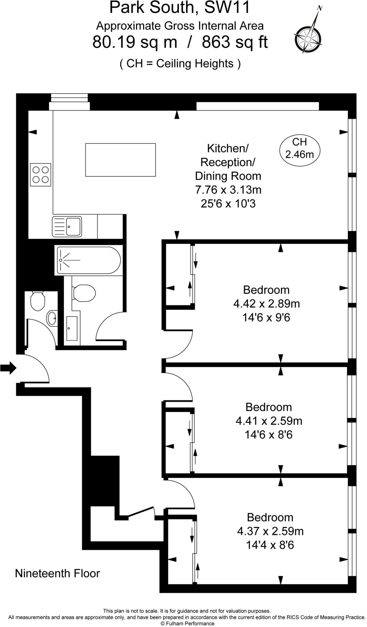 A spacious 3 double bedroom flat with superb views of the London skyline and Battersea Park from the 19th floor. Set within a well maintained residential development with a concierge, gym and pool. Benefits from an additional WC.