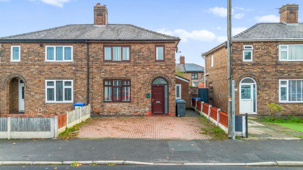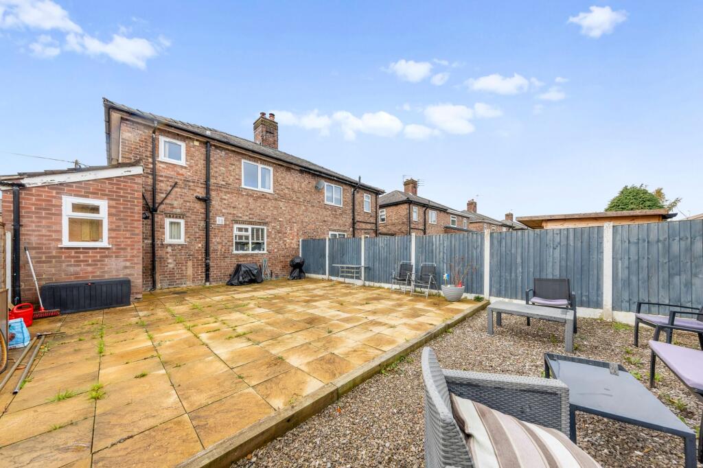 This is a three-bedroom semi-detached property located on Whitley Avenue in Warrington. The house offers a modern bathroom and a garden. It is situated in a residential area with proximity to schools and transportation links. The property is listed at £195,000, which is below the average price per square foot for the area, suggesting good value for money. While the property appears to be in generally good condition, some areas could benefit from updating. The garden is mostly paved.