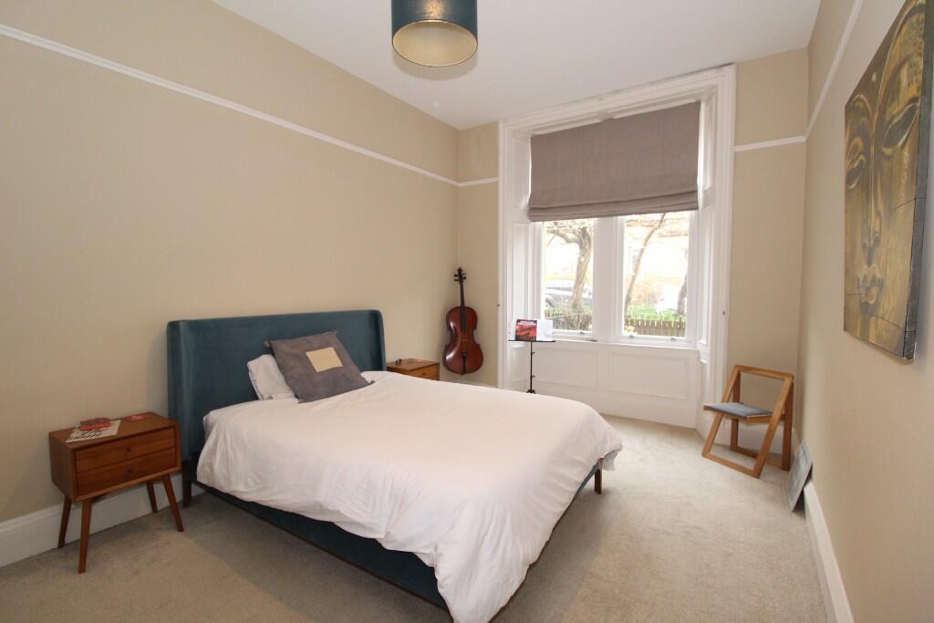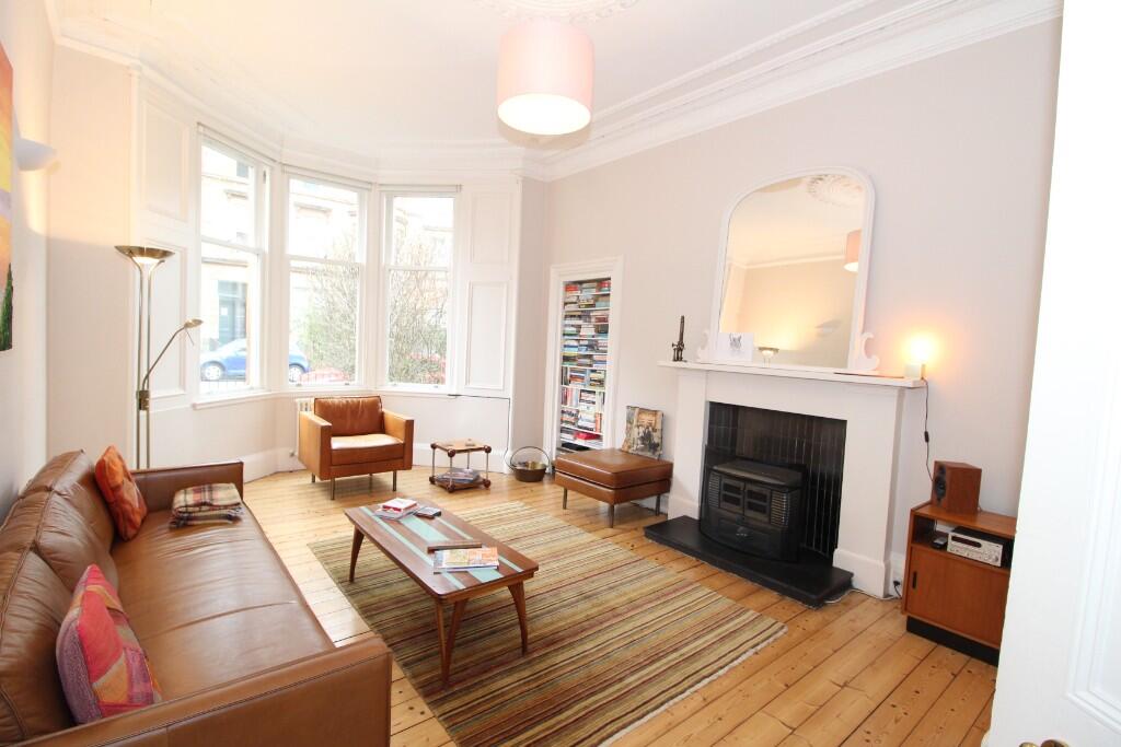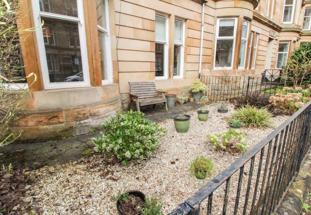 Stylish, unfurnished, 2 bedroom, traditional ground floor Flat in Glasgow's West End. Spacious property comprises, welcoming hallway, bay windowed lounge, fitted dining kitchen with appliances, 2 double bedrooms and galley bathroom. Gas central heating, double glazing, secure entry, front garden.