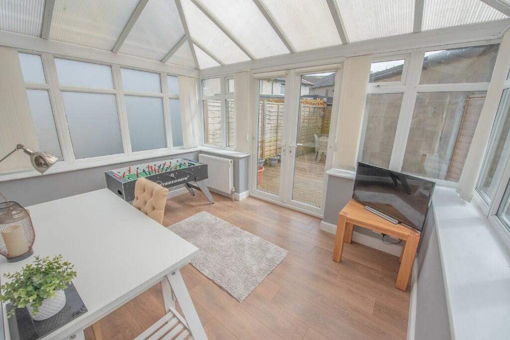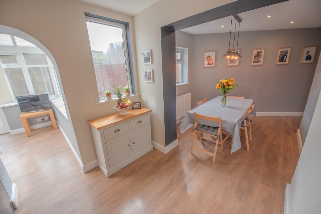 This four-bedroom semi-detached house is located in Skipton East, Craven, North Yorkshire. The property benefits from a modern kitchen and conservatory, as well as a garden and off-street parking. While the average house price in the area is significantly higher (771,250), this property is listed at 299,950. This price point should be considered in relation to the size of the property (1267.66 sqft) and the condition of the property. The nearby properties show a range of prices, but many are smaller terraced houses. The proximity to schools and transportation links (Skipton train station is 2.78km away) are positive aspects of the location. More information on the plot size would allow for a more complete analysis of the land value.