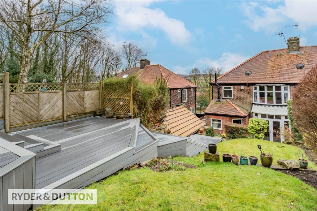 This semi-detached property is located in Grasscroft, Saddleworth, a desirable area in Oldham, Greater Manchester. The property benefits from being close to good schools such as Friezland Primary School (rated Good by Ofsted) and St Anne’s Cofe Lydgate Primary School (also rated Good). Transport links are also reasonable, with Greenfield train station approximately 1.86km away. The property itself appears to be well-maintained and recently updated, with a modern kitchen and bathroom. The images show a good-sized garden with a decked area and garden shed, adding to its appeal. While the square footage is not provided, the list price of £455,000 seems relatively high compared to the average price of £372,333 for the area, especially considering the average price per sqft of £375. However, the property’s condition, features, and location could justify a higher price. More information on the property’s size would be needed to give a definitive opinion on the value for money.