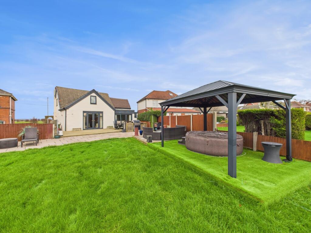 This is a detached bungalow located in Thorpe, Wakefield. The property has four bedrooms, one bathroom, and a large garden. The property appears to be in good condition, with modern fixtures and fittings. The kitchen and bathrooms have been recently updated. The property is well-maintained and appears to be in a move-in condition. The property is located close to schools and transportation links. The property is listed for £400,000, which is above the average price for the area. However, the property is a detached bungalow with four bedrooms and a large garden, which justifies the higher price.