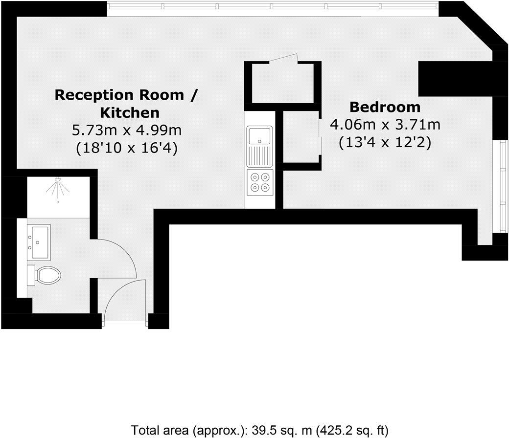 The property is a studio apartment located in a central Slough location on the High Street. The apartment is part of the Skyline building. Based on the images provided the apartment appears to be in good condition and is modern in style. The apartment is small at only 425.20 sqft. There is no outdoor space, and the plot size is 0.00 sqft.