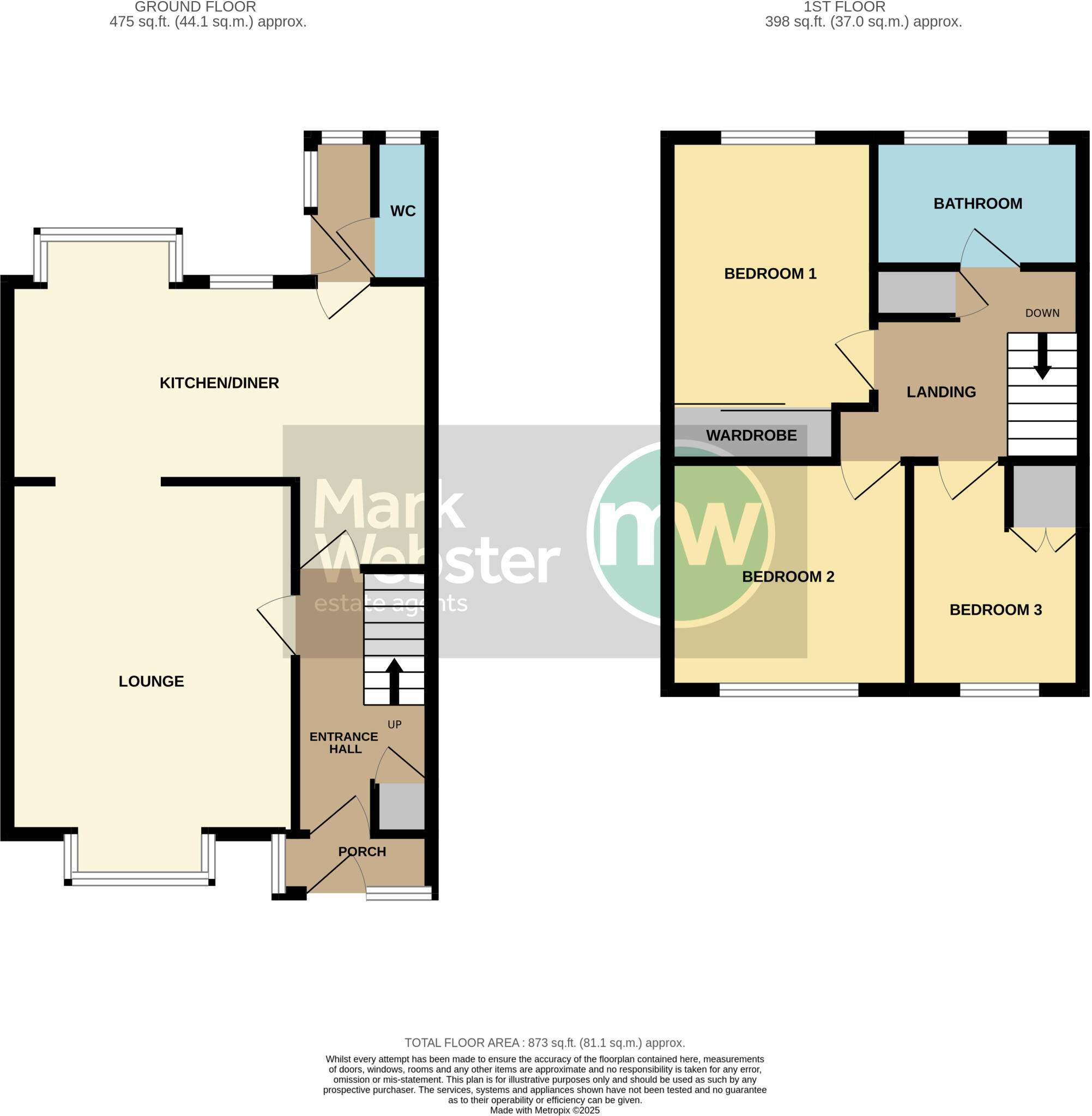 Based on the provided images, the property appears to be in good condition. The interior is clean and well-presented, with a modern kitchen and bathroom. There is no obvious evidence of significant repairs or renovations needed. The exterior also looks well-maintained, with a neat garden and a garage. The property has a good sized garden to the rear.